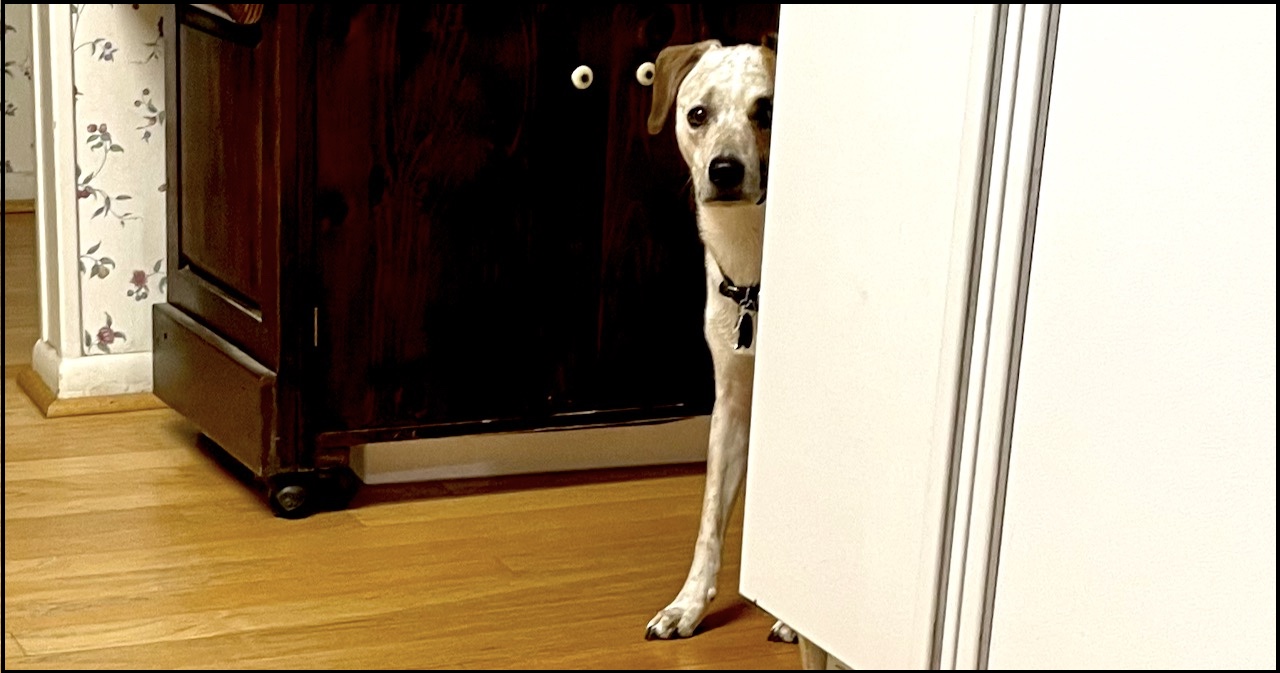 She found a hiding spot: a cabinet under the sink in a bathroom. The door didn’t latch, so she could open it with her nose or paw. It would close behind her when she got in. I will never forget the sound of that cabinet door flapping shut behind her whenever anything unusual happened in the house.