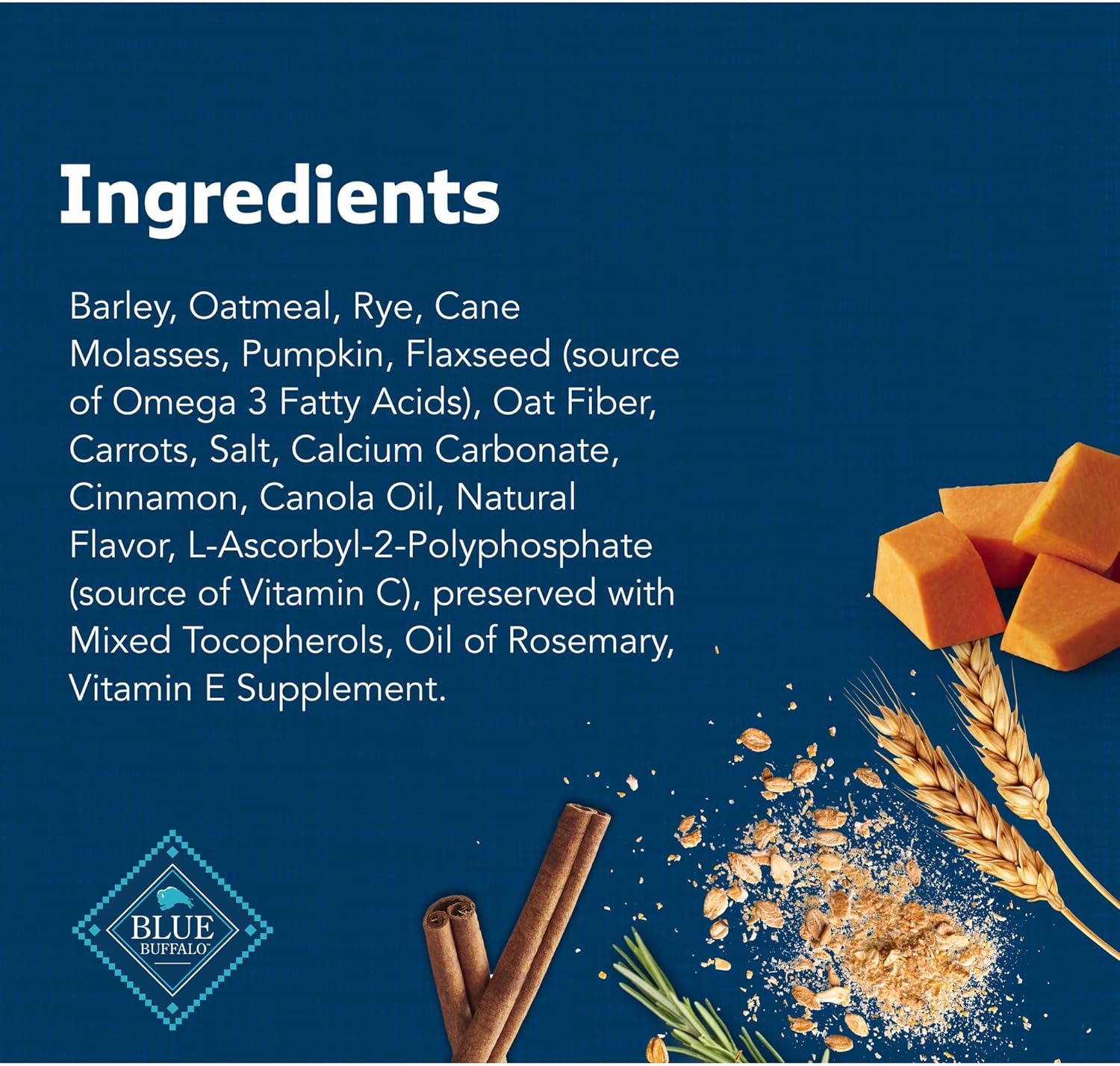 Contains: One (1) 16-oz bag of BLUE Health Bars Natural Crunchy Dog Treats Biscuits, Pumpkin & Cinnamon