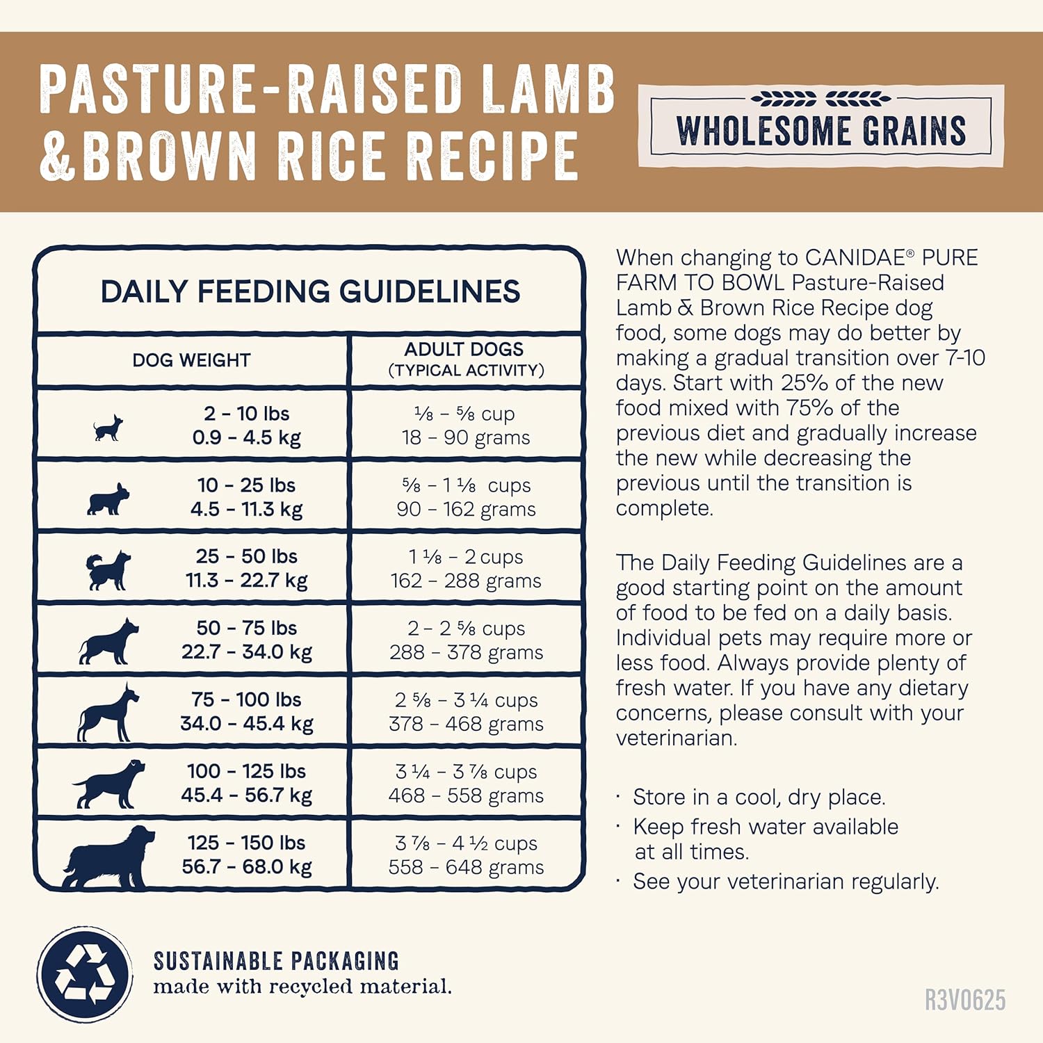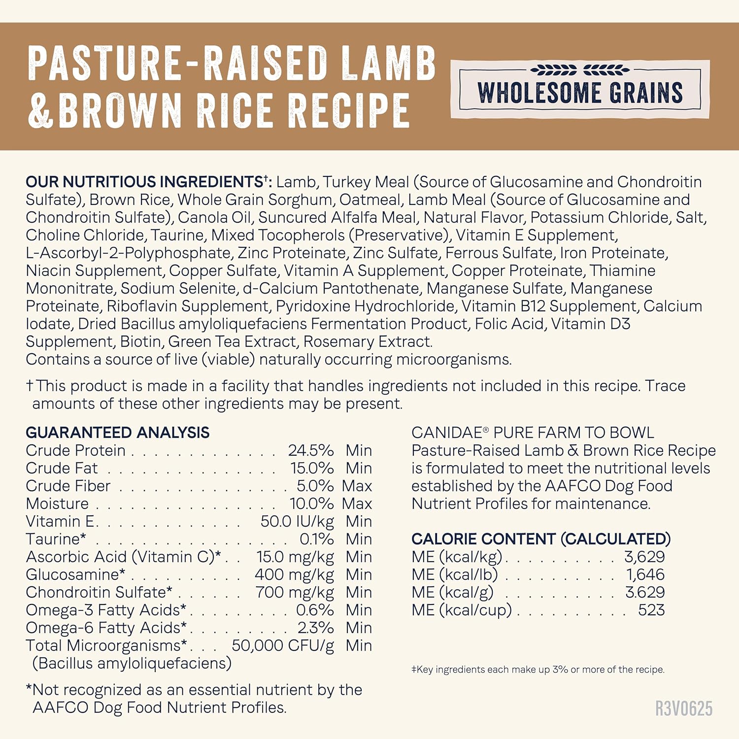 Canidae Pure Farm to Bowl Pasture-Raised Lamb & Brown Rice Dog Food, Adult Dog Food, 22lb