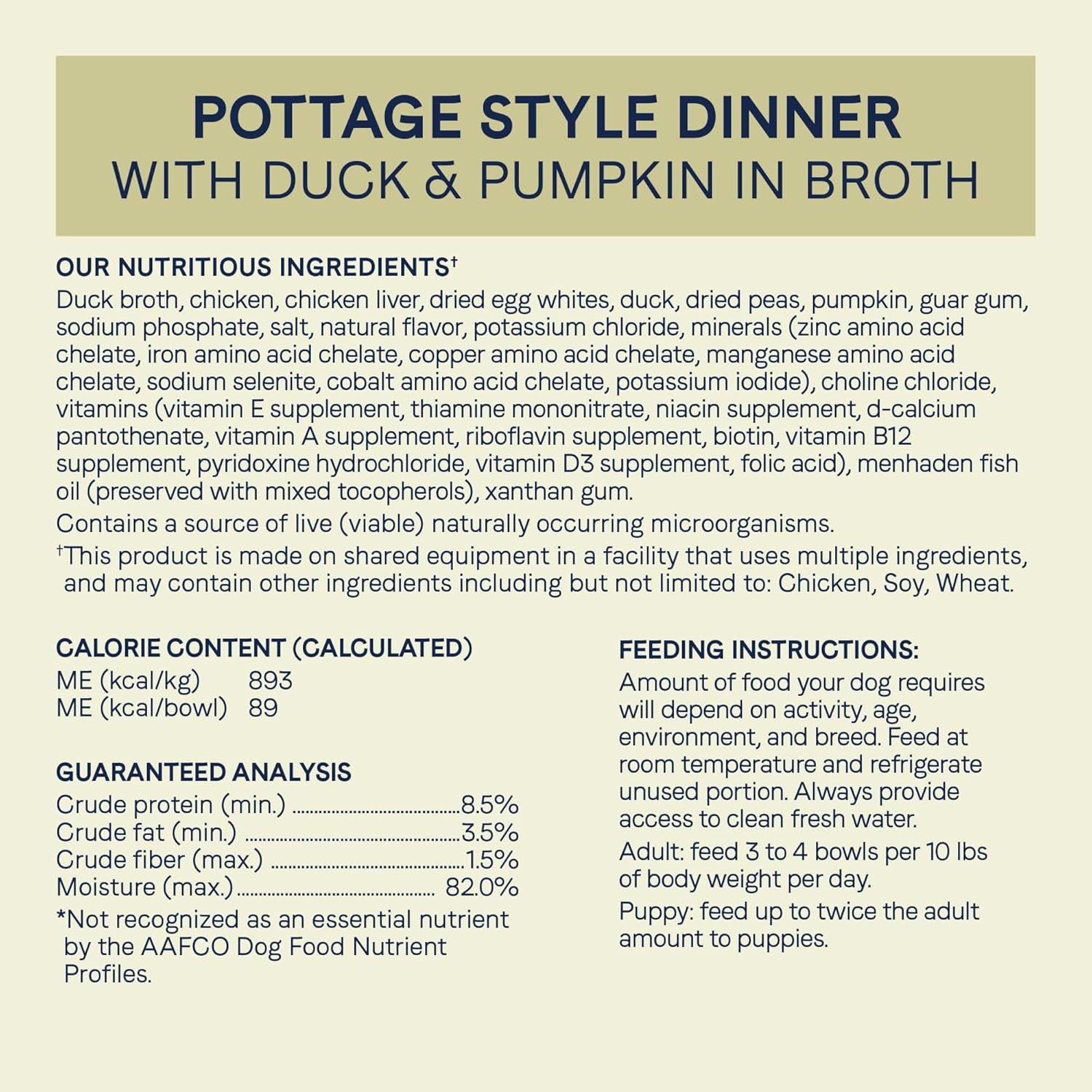 Contains 12- 3.5 Ounce Tubs of Canidae Pure Petite Minced Duck and Pumpkin in Broth Recipe Wet Dog Food