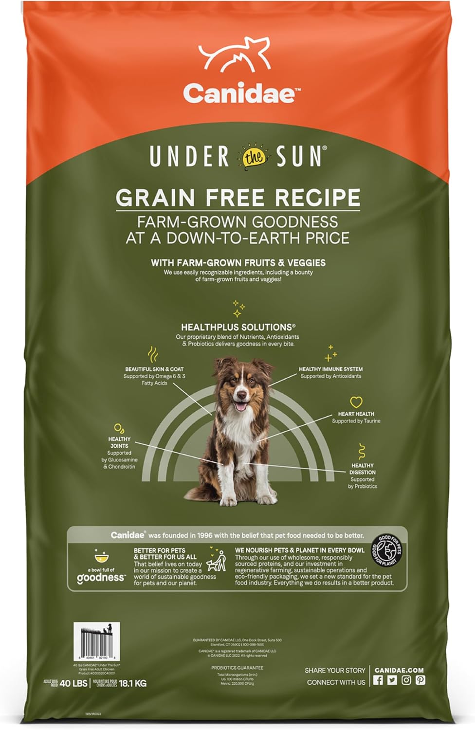 Contains 1- 40 Lb. Bag of Canidae Under the Sun Chicken Recipe Dry Dog Food