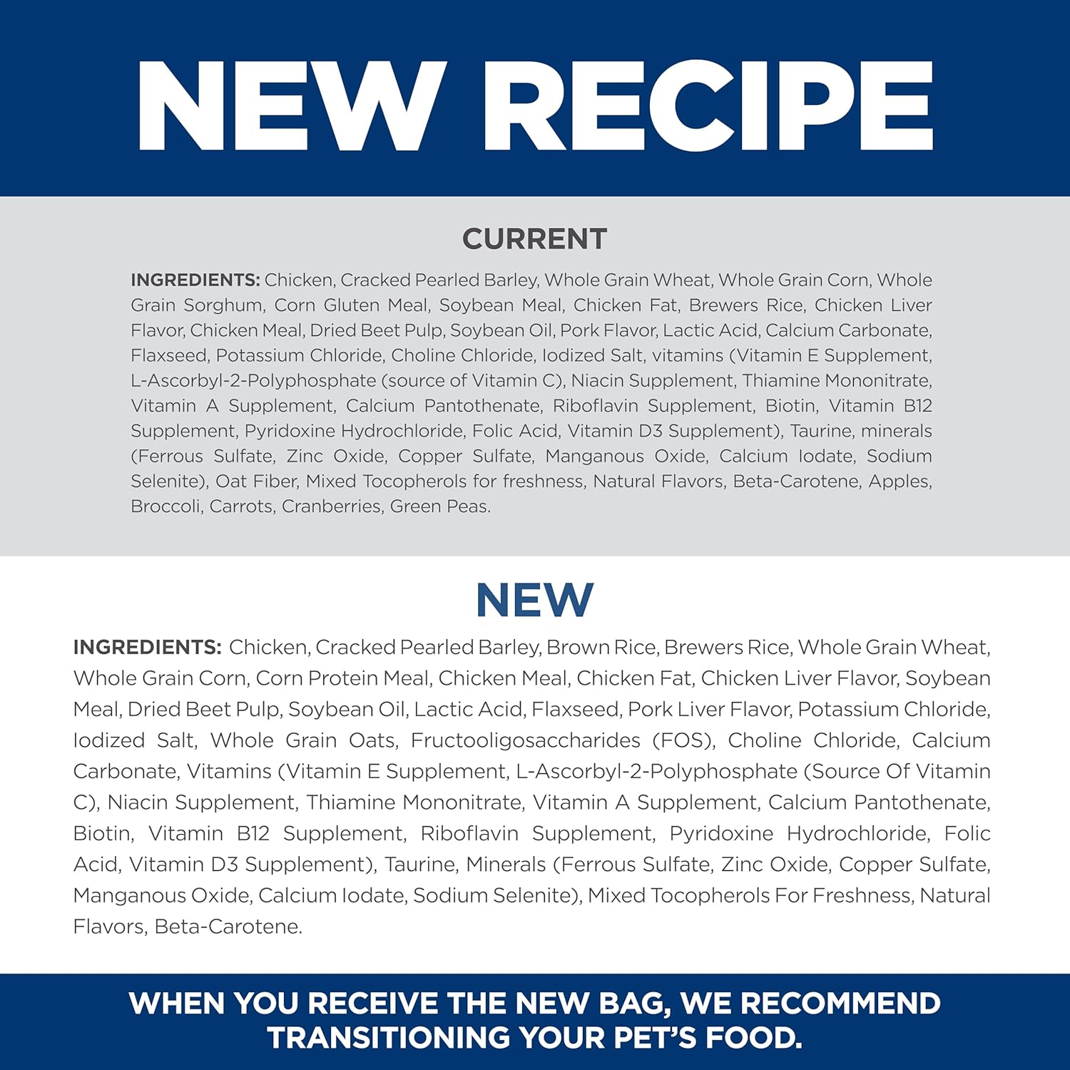When your dog is in the prime of his life, he needs a quality dog food that keeps up. Hill’s Science Diet Adult dry dog food uses a high quality protein source for lean muscles, natural fibers for healthy digestive and omega-6s for a beautiful coat. Specially formulated to make grown dogs come running for mealtime, this adult food provides the right balance of nutrients to help your grown-up dog live a happy, healthy life. Science Diet dog food made with natural ingredients is #1 Veterinarian Recommended and is formulated for a great taste adult dogs love. There’s more to love with the new look of Science Diet. Some of our products also have new names, new kibble shapes & new formulas.