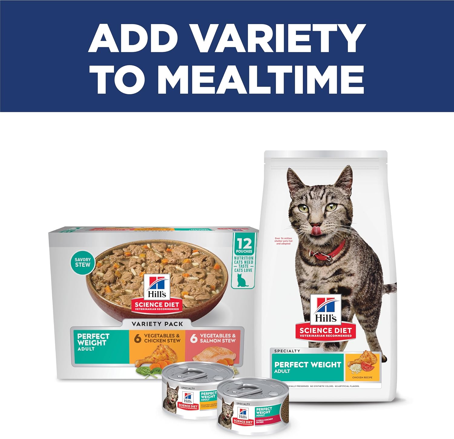 Hill’s Science Diet Adult Perfect Weight Dry Cat Food, Chicken, 15 lb. Bag
