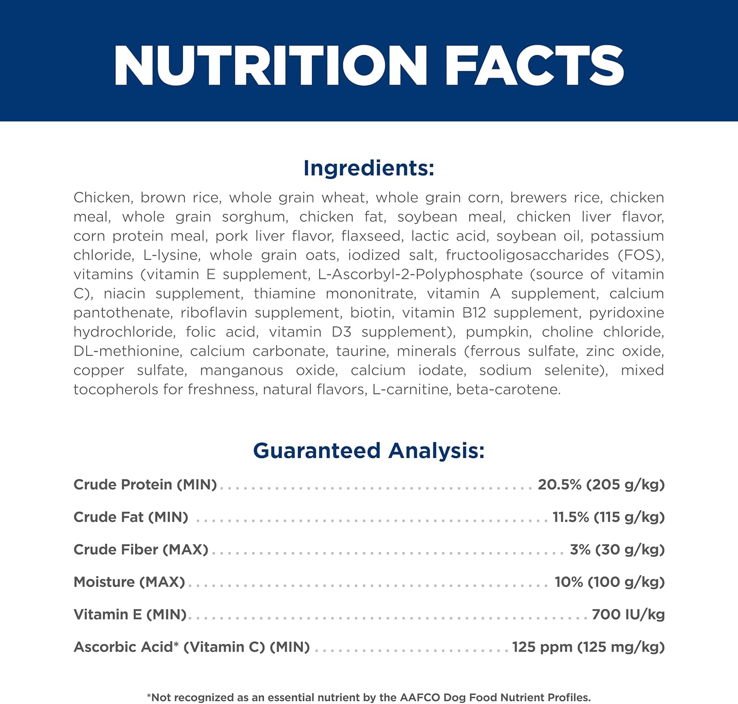 Your little dog is still a full-grown canine, so make sure your small or mini breed dog has the precise nutrition of Hill’s Science Diet Small & Mini adult dog food. This pet food is made with easy-to-digest ingredients, including pumpkin, to help support healthy digestive and stool quality. The right combination of protein, fats, and carbs gives your small dog the energy they need, with balanced nutrition to help keep them at their ideal body weight. To support your small or mini dog’s immune system, this dog food made with natural ingredients contains a proprietary antioxidant blend that will promote lifelong health for your adult small breed dog. All of this in a delightful kibble texture designed for a small dog’s unique preferences!