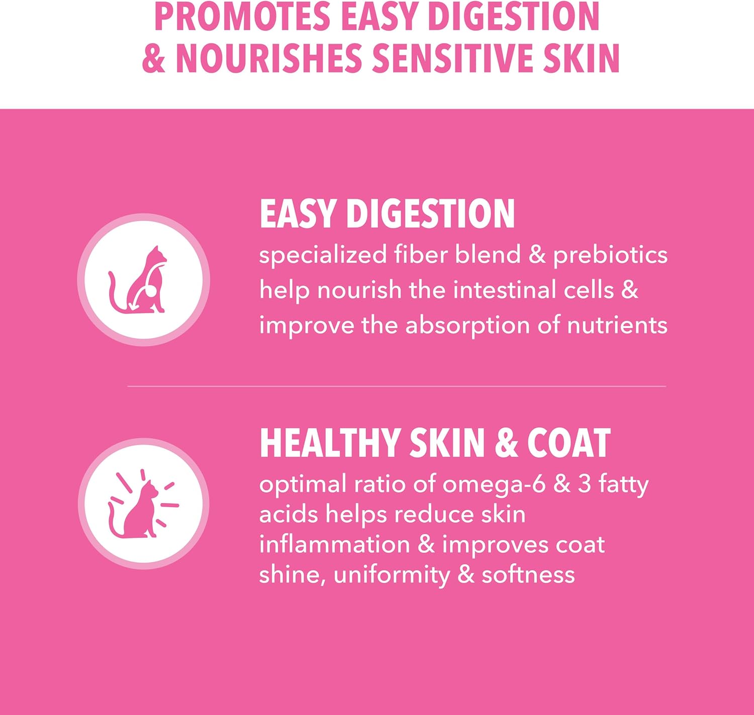 Nourishes Skin and Coat: IAMS Proactive Health adult cat pet food is formulated with an optimal ratio of Omega 6 & 3 fatty acids to help reduce skin inflammation & improve your cat’s coat shine, uniformity, and softness