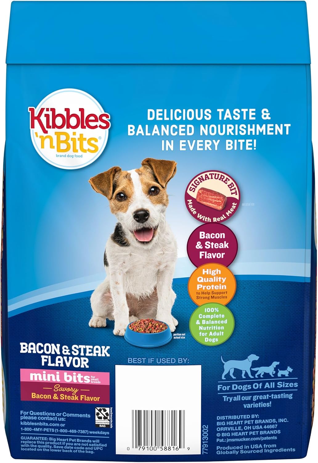 Maximize your furry friend’s mealtime fun with a small breed dry dog food that’s easy for small dogs to chew and exciting for dogs of all sizes. Kibbles ’n Bits Mini Bits Small Breed Savory Bacon & Steak Flavor dry dog food includes crunchy kibbles and our signature bits made with meat. Every serving delivers complete and balanced nutrition for adult dogs, so you can rest assured you’re feeding your pet the good stuff.
