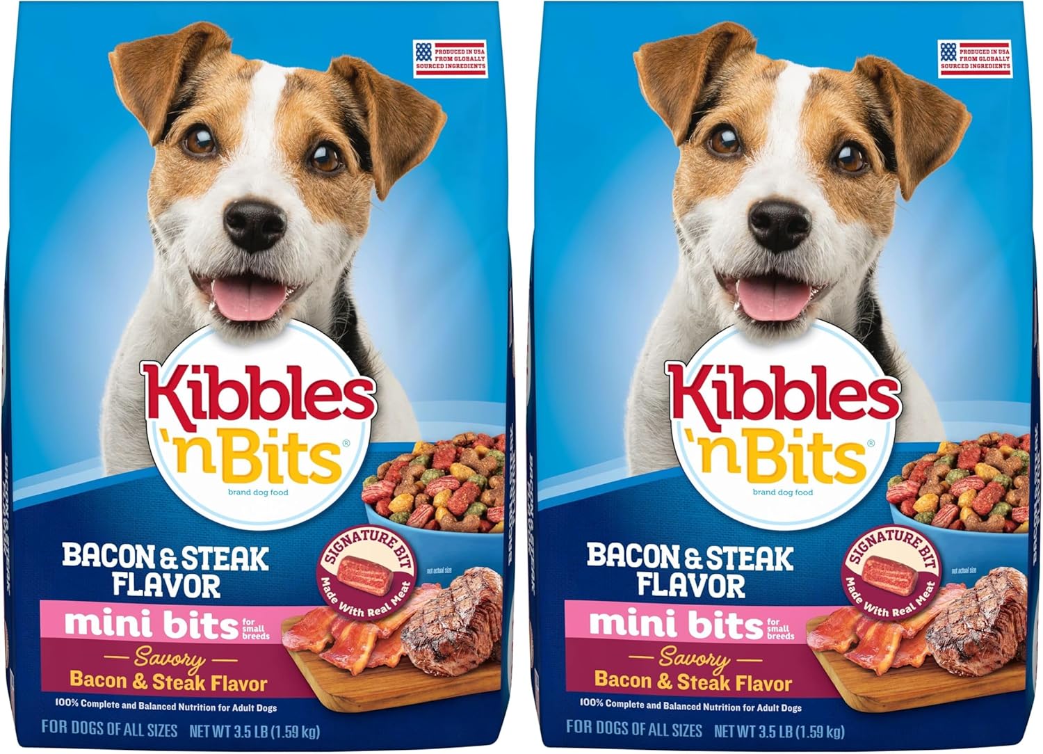 Kibbles ‘n Bits Dog Food, Savory Bacon & Steak Flavor, Dry | Small Breed | Mini Bits | 3.5 lb Bag | Pack of 2