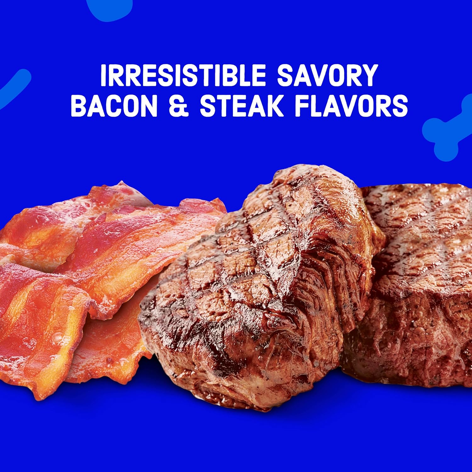 BACON & STEAK FLAVOR: Bacon and steak flavored dry dog food featuring crunchy and tender bits in every bite