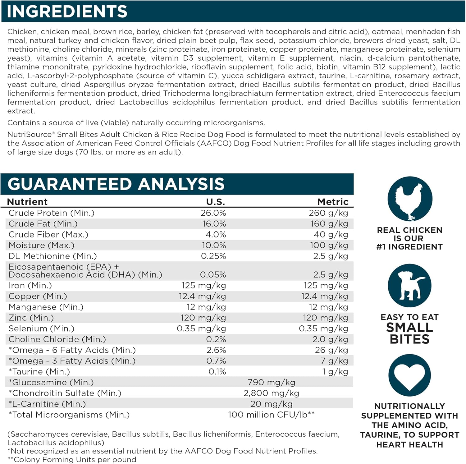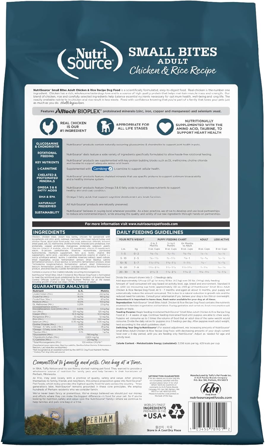 As a member of our grain inclusive series, NutriSource Chicken and Rice Small Bites Dry Dog Food is formulated to meet AAFCO guidelines for all lifestages