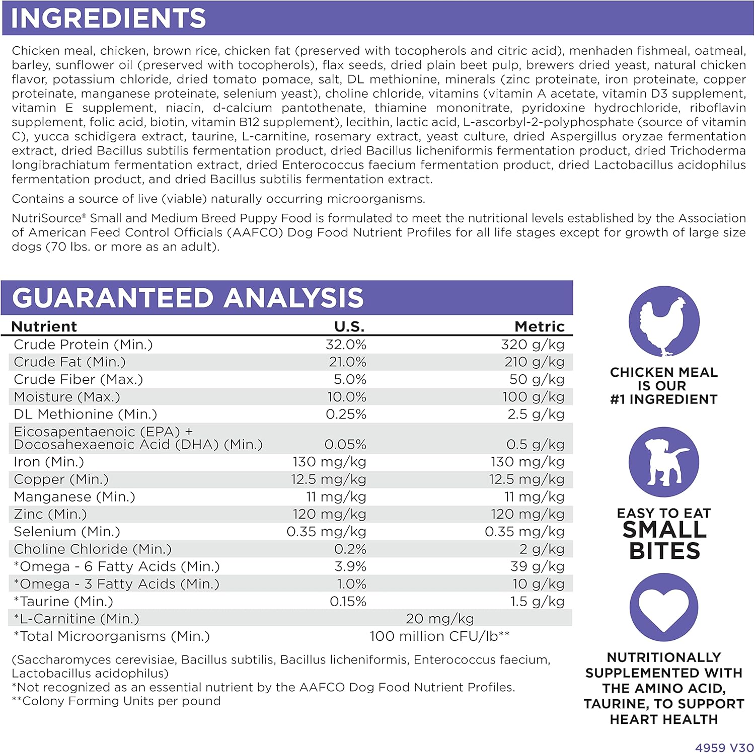NutriSource grain inclusive formulas deliver compact nutrition and include prebiotics and probiotics to help support a healthy gut