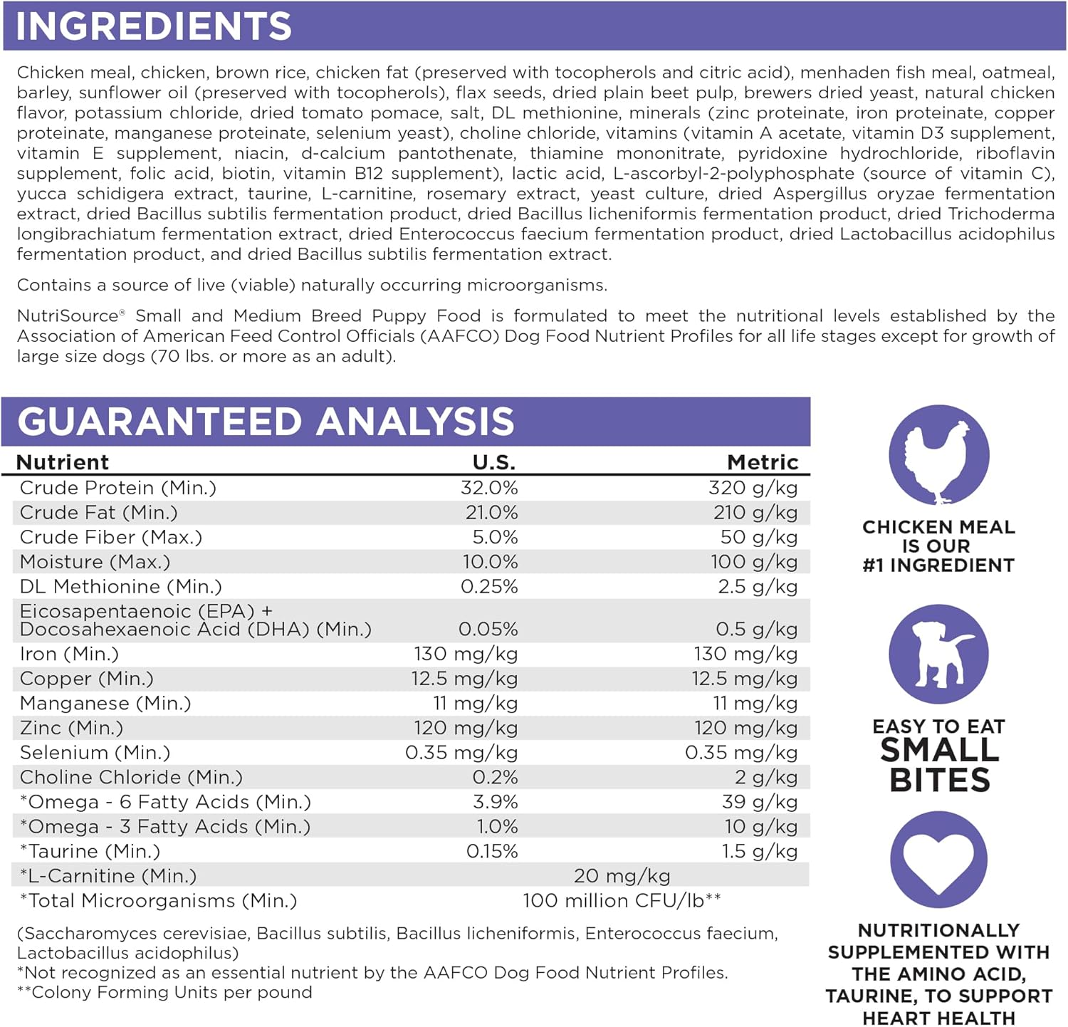 Heart Health: Supplemented with L-Carnitine, taurine, choline chloride, and DL Methionine to support cardiovascular development.