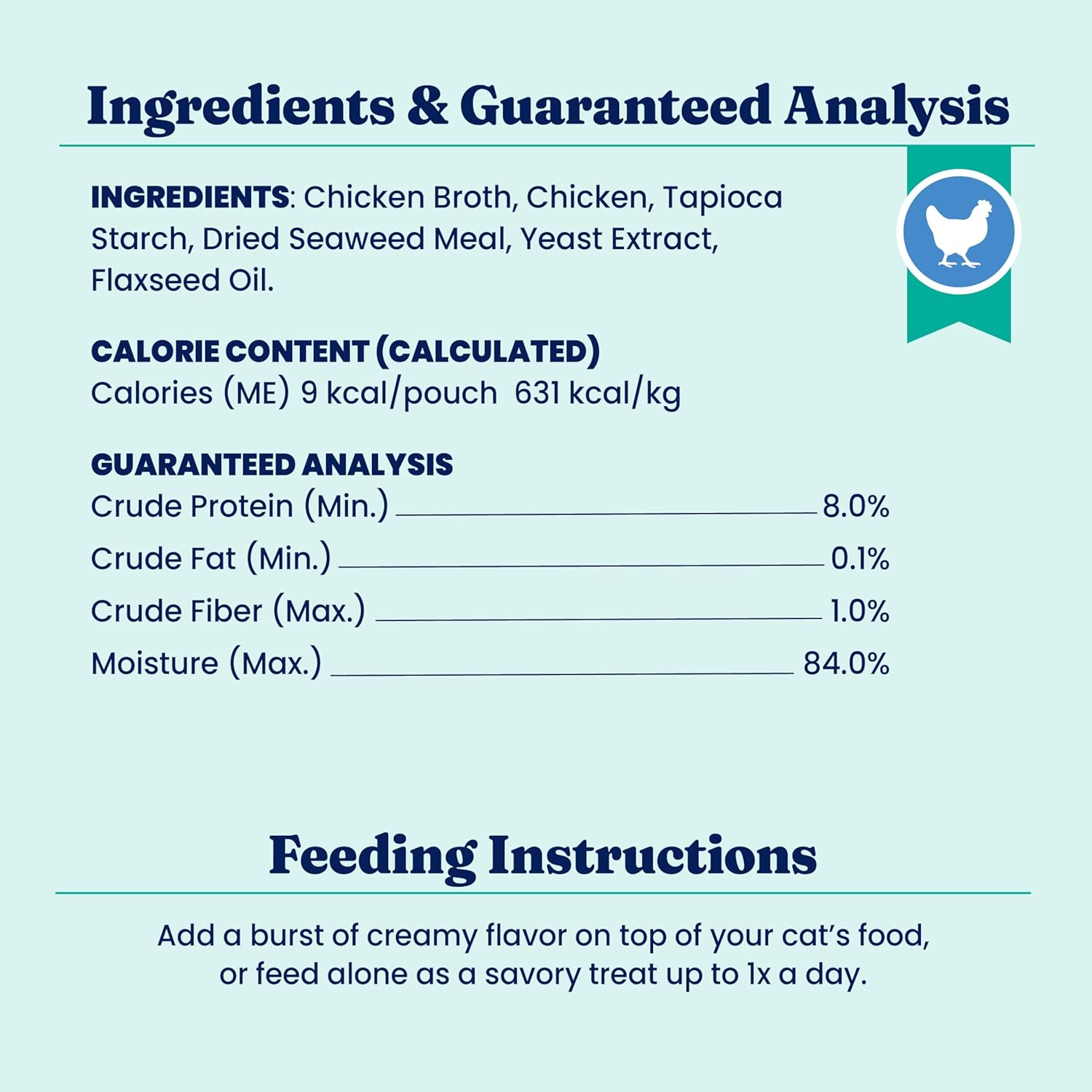 Functional Lickables for Skin & Coat Health – With flaxseed & seaweed in this grain-free, high-moisture recipe, each cat puree cat snack promotes healthy skin, shiny coats & hydration—ideal cat tube treats for indoor cats, senior cats & kittens