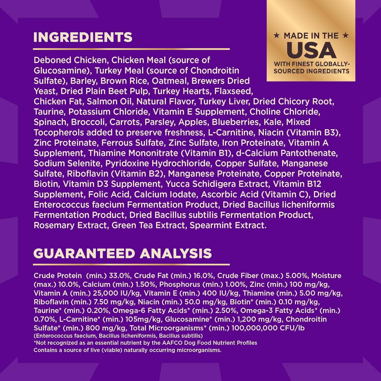 SUPPORTS DIGESTIVE HEALTH & STRONG JOINTS: Guaranteed levels of omega fatty to support healthy skin and coat, glucosamine for strong joints, high fiber and probiotics for digestive health, and taurine for a healthy heart.
